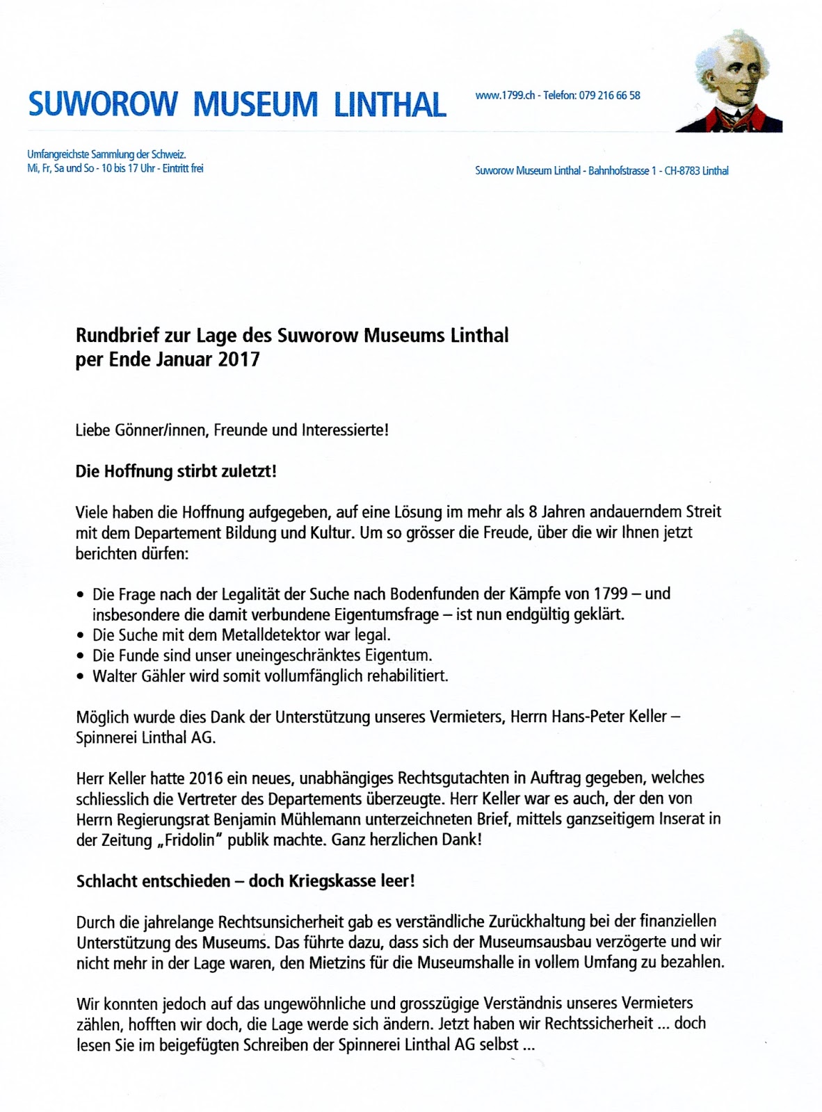Rundbrief Suworow Museum Ende Januar 2017
